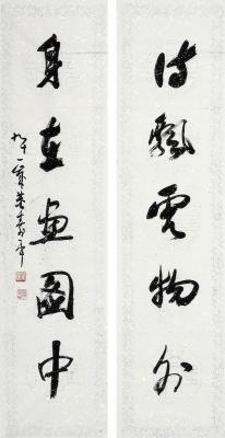 DONG SHOUPING FIVE-CHARACTER COUPLET IN CURSIVE SCRIPT