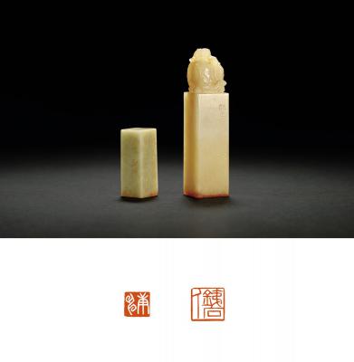 TWO SHOUSHAN STONE AND QINGTIAN STONE SEALS CARVED BY DENG ER'YA
