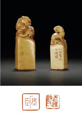 TWO SHOUSHAN STONE SEALS CARVED BY DING FUZHI AND REN XIAOTIAN