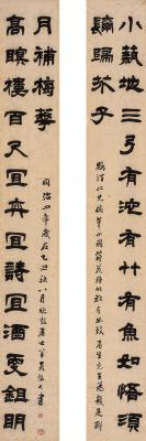 款识: 鹤汀仁兄修葺小圃,莳花种竹,雅有幽致。眉生先生为题是联,同治四年岁在乙丑秋八月,晚敩居士弟吴让之书。