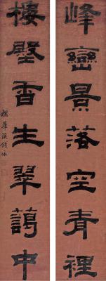 QIAN YONG SEVEN-CHARACTER COUPLET IN OFFICIAL SCRIPT