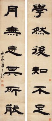 ZHAI YUNSHENG CALLIGRAPHY COUPLET WITH SIX CHARACTERS A LINE IN OFFICIAL SCRIPT