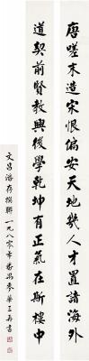 款识: 文昌潘存撰联。一九八零年,番禺麦华三再书。