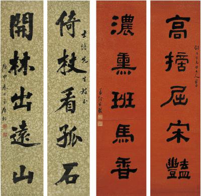 何维朴(1844~1925)唐 驼(1871~1938) 隶书 五言联