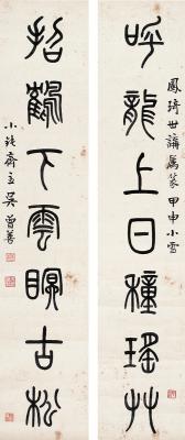 WU ZENGSHAN SEVEN-CHARACTER COUPLET IN SEAL SCRIPT