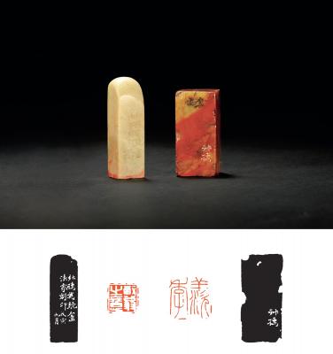 A QINGTIAN STONE SEAL AND A SHOUSHAN STONE SEAL CARVED BY ZHAO SHURU
