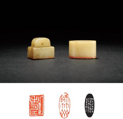 A SHOUSHAN ‘FURONG’ STONE SEAL AND A JADE SEAL CARVED BY GAO YONG, ETC.