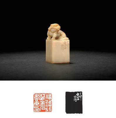 A WHITE SHOUSHAN ‘FURONG’ STONE ‘BEAST’ SEAL CARVED BY ZHU FUKAN