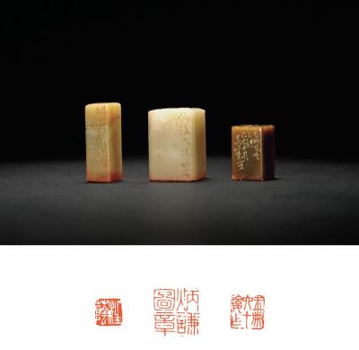 THREE SHOUSHAN STONE SEALS CARVED BY ZHU QISHI, ETC.