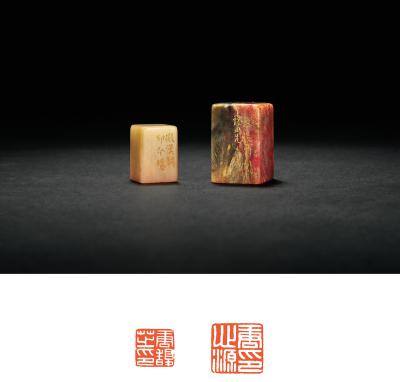 方介堪刻鸡血石、寿山石章二方