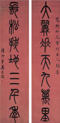 WU DACHENG SEVEN-CHARACTER COUPLET IN SEAL SCRIPT