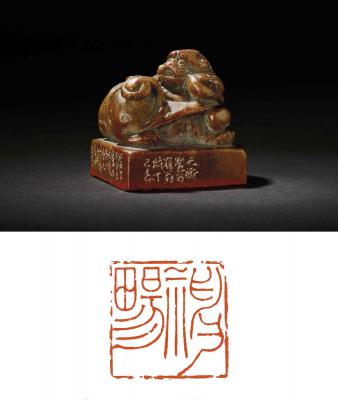 韩天衡刻徐子鹤自用青田石兽钮章