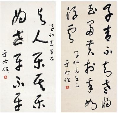 2. 与人乐其乐,为世平不平。学仁先生正,于右任。钤印: 右任(朱)