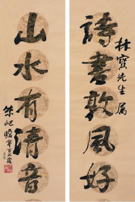 ZHU QIZHAN FIVE-CHARACTER COUPLET IN RUNNING SCRIPT