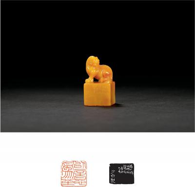 A YELLOW ‘FURONG’ STONE ‘BEAST’ SEAL CARVED BY WANG TI