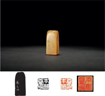 印文: 唐本俭印 边款: 让翁作。 QING DYNASTY A CHANGHUA STONE SEAL CARVED BY WU RANGZHI 尺寸: 1.9×1.9×4.2cm 估价: 80,000-120,000 元