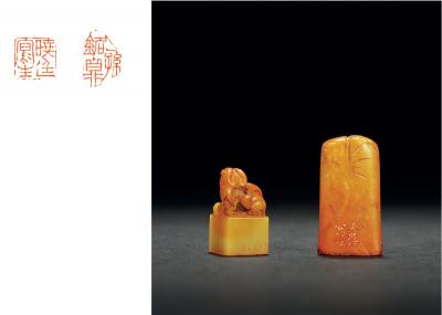 QING DYNASTY TWO SHOUSHAN STONE SEALS CARVED BY ZHANG XIN AND DENG SANMU