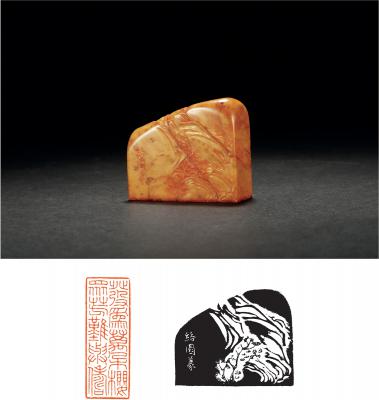 A LIGHTLY CARVED SHOUSHAN STONE SEALWITH LANDSCAPE PATTERNS CARVED BY GAO LUOYUAN