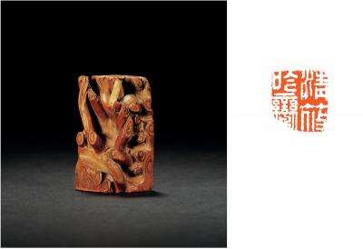 印文: 清筱吟鸾 QING DYNASTY A BAMBOO ROOT SEAL 尺寸: 3×2.8×5.8cm 估价: 20,000-30,000 元