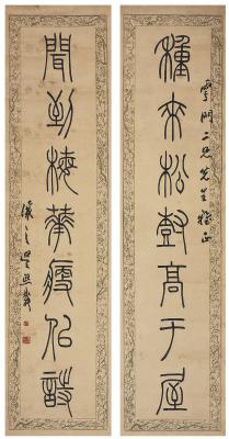 WU XIZAI SEVEN-CHARACTER COUPLET IN SEAL SCRIPT