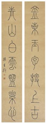 SUN XINGYAN SEVEN-CHARACTER COUPLET IN SEAL SCRIPT