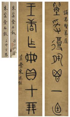 ZHU WEIBI SEVEN-CHARACTER COUPLET IN SEAL SCRIPT