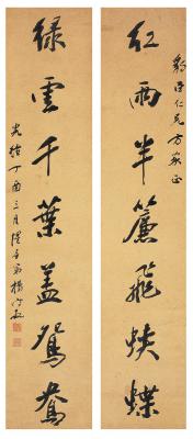 YANG SHOUJING SEVEN-CHARACTER COUPLET IN RUNNING SCRIPT
