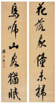 YANG SHOUJING SIX-CHARACTER COUPLET IN CURSIVE SCRIPT