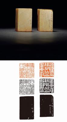 QING DYNASTYA PAIR OF QINGTIAN STONE SEALS ENGRAVED BY WU RANGZHI