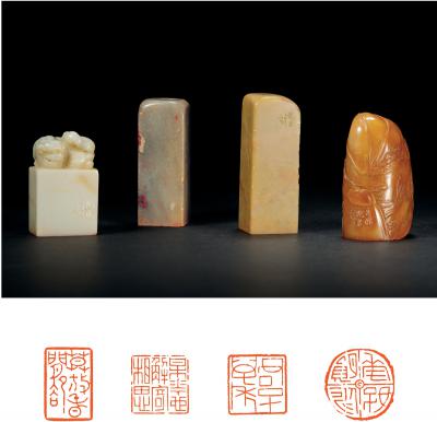 金禹民刻寿山、昌化石等印章四方