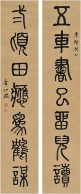 ZHANG BINGLIN SEVEN-CHARACTER COUPLET IN SEAL SCRIPT