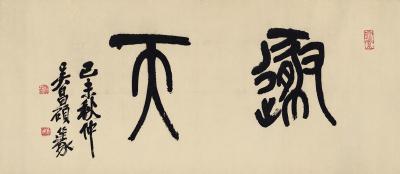 纸本 镜片 1919年作 识文: 遁天。 款识: 己未秋仲,吴昌硕篆。 钤印: 俊卿之印(朱) 仓硕(白) 虚素(朱) WU CHANGSHUO CALLIGRAPHY IN SEAL SCRIPT Ink on paper, mounted Dated 1919 尺寸: 96×42cm 估价: 400,000-600,000 元