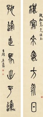WU CHANGSHUO SEVEN-CHARACTER COUPLET IN SEAL SCRIPT