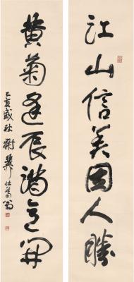 XIE ZHILIU SEVEN-CHARACTER COUPLET IN RUNNING SCRIPT