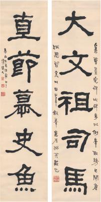 LI RUIQING FIVE-CHARACTER COUPLET IN OFFICIAL SCRIPT