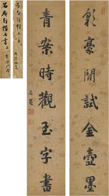 签条: 石庵行楷七言(上、下),黄库笺本,瓶斋秘笈。