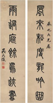 WU DACHENG SEVEN-CHARACTER COUPLET IN SEAL SCRIPT