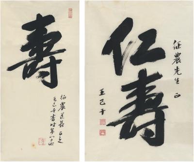 1. 寿。征农道长正之。王己千书,时年八十也。钤印: 海外遗民(朱) 溪岸草堂(朱)