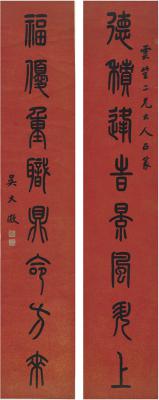WU DACHENG EIGHT-CHARACTER COUPLET IN SEAL SCRIPT