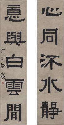 作者简介: 伊秉绶(1754~1815),字组似,号墨卿、墨庵、南泉、秋水、西湖长,福建宁化人。乾隆五十四年(1789)进士。官惠州、扬州知府。工书,尤精篆隶,精秀古媚。其书超绝古格,使清季书法,放一异彩。隶书尤放纵飘逸,自成高古博大气象,与邓石如并称大家。