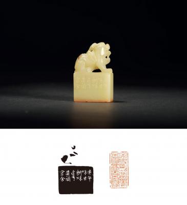 QING DYNASTY A WHITE SHOUSHAN ‘FURONG’ STONE ‘BEAST’ SEAL ENGRAVED BY LUO JUN