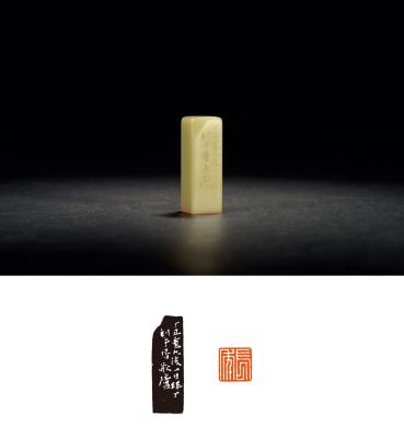 A PLAIN SQUARE QINGTIAN STONE SEAL ENGRAVED BY WU ZHONGLIN