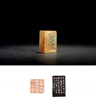 A LIN QIANLIANG’S ENTERTAINING QINGTIAN STONE SEAL FOR PRIVATE USE ENGRAVED BY HAN DENG’AN