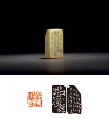 AN ENTERTAIVING QINGTIAN STONE SEAL ENGRAVED BY ZHAO GUNI