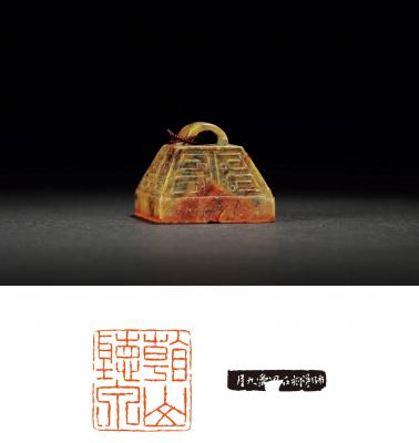 AN ENTERTAINING QINGTIAN STONE SEAL ENGRAVED BY TAN XIZAN