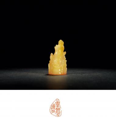 AN ENTERTAINING STONE SEAL WITH DRAGON DESIGN CARVED BY FENG KANGHOU