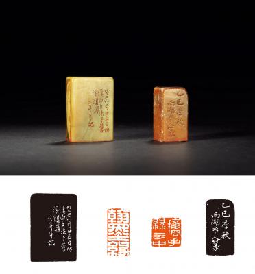 QING DYNASTY TWO SEALS MADE FROM CHANGHUA STONE STONE ANG SHUOUSHAN STONE ENGRAVED BY DA SHOU AND OTHERS