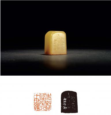 印文: 先贤任子八十世孙 边款: 匊邻仿汉。 QING DYNASTY A SQUARE SEAL ENGRAVED BY HU JUE 尺寸: 2.8×2.8×3.8cm 估价: 50,000-70,000 元 作者简介: 胡镢(1840~1910),一名孟安,字菊邻,号老鞠、废鞠、不枯、晚翠亭长、竹外外史、南湖寄渔,别署不波生,浙江桐乡人。清同治八年中秀才。善书画篆刻,工诗词。