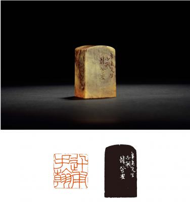 A SQUARE QINGTIAN STONE SEAL ENGRAVED BY HAN DENG’AN
