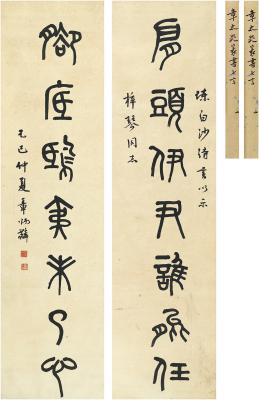 ZHANG BINGLIN SEVEN-CHARACTER COUPLET IN SEAL SCRIPT